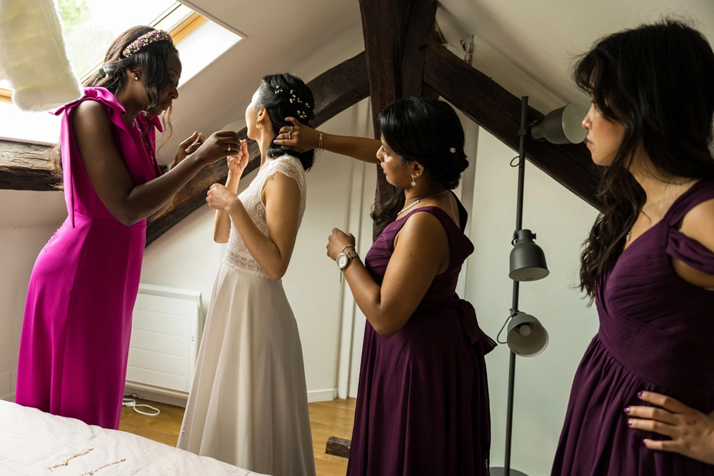 Être présent dès les préparatifs des mariés permet de photographier différents moments que la future mariée ne peut pas vivre et partager. Cela permet également d’avoir des images qui racontent votre journée si vous souhaitez réaliser un livre photos de mariage.